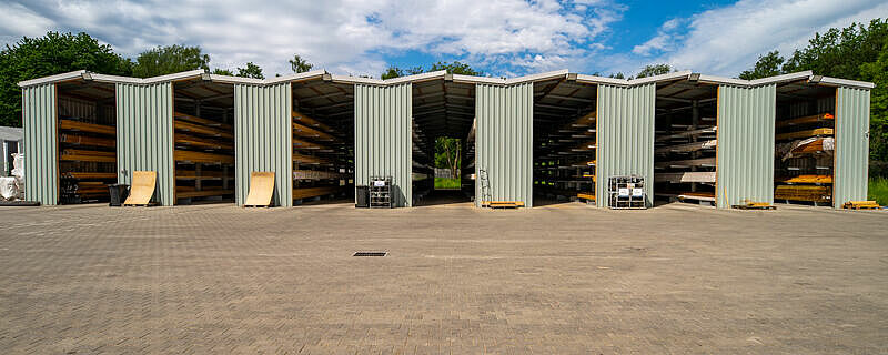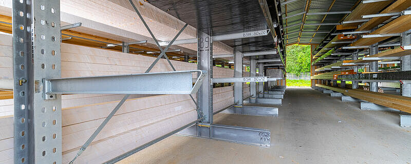 Passando dallo stoccaggio a pavimento a quello  in scaffalature cantilever OHRA, la società commerciale polacca di legname Abies Polska è stata in grado di aumentare l'efficienza dei processi logistici nel settore outdoor del 30 percento. Inoltre, gli articoli in legno nelle otto file di scaffalature lunghe 26 metri sono ora protetti dalle intemperie grazie al tetto integrato e alle pareti rivestite.