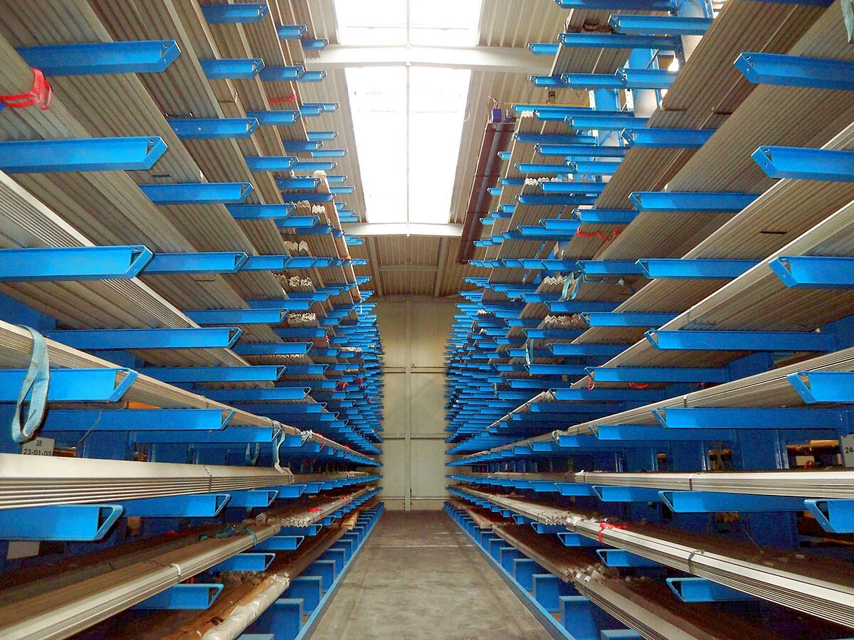 La soluzione era rappresentata da un sistema di scaffalature con braccia a sbalzo alto 7,50 mt, con 14 ripiani disposti l'uno sopra l'altro. Ciascun braccio aveva una portata di 1.200 kg e una lunghezza di 1.250 mm.