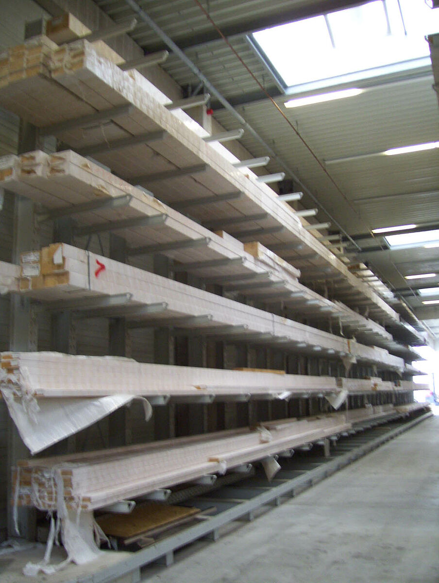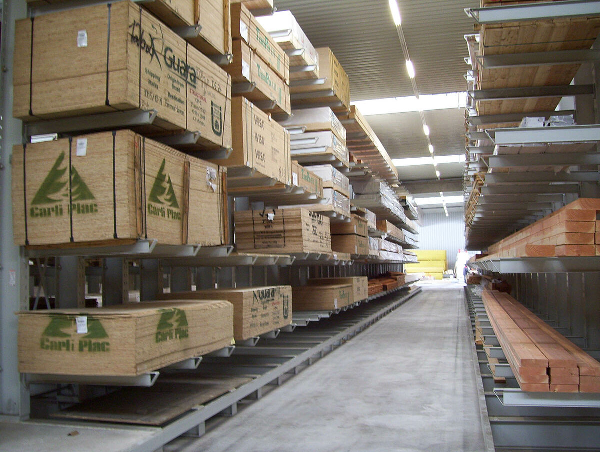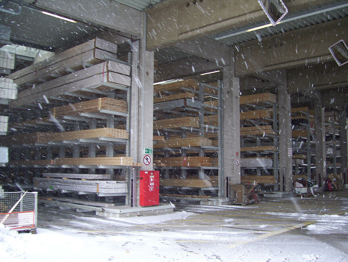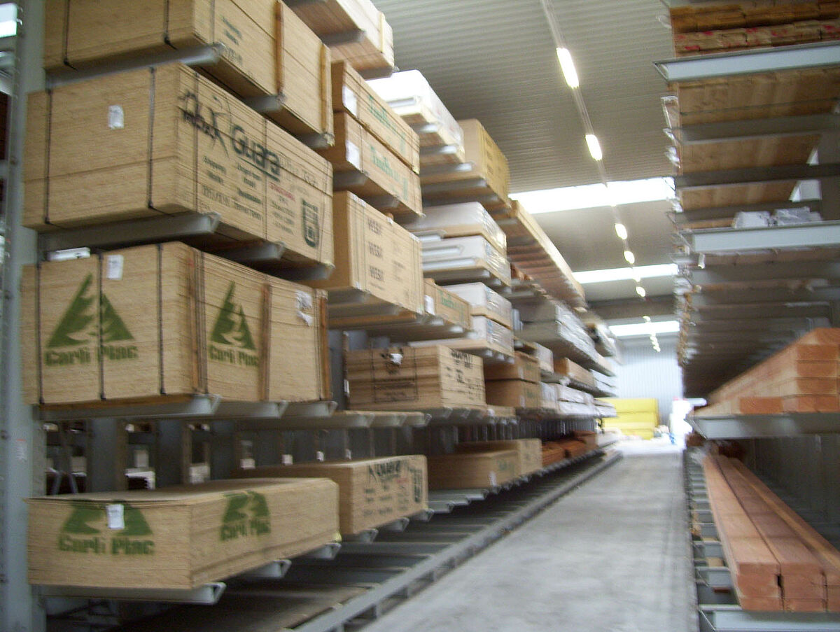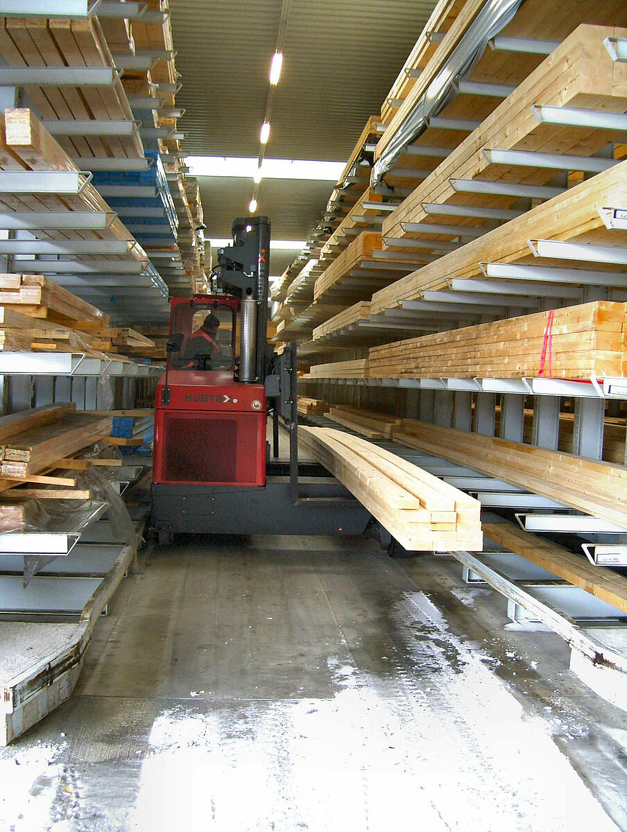 In sole due settimane gli esperti di Kerpen hanno così montato 236 postazioni per legno massiccio da costruzione e legno lamellare in file di scaffali cantilever lunghe 40 e 50 metri e alte 6,2 metri. Complessivamente sono stati così installati 2.800 metri lineari di scaffali su più livelli per prodotti di legno lunghi. Inoltre sono state realizzate 300 postazioni in scaffalature portapallet e cantilever per l'immagazzinamento di merce su pallet e per l'assortimento di base. Il magazzino è gestito da due carrelli elevatori laterali Hubtex e da un carrello elevatore frontale Linde. Solo nei primi sei mesi successivi alla messa in servizio sono stati movimentati 3.300 metri cubi di legno.