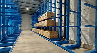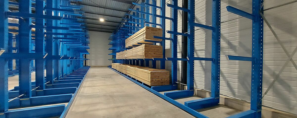 Il gruppo commerciale di materiali edili Derrey ha attrezzato la nuova sede "Gedibois Derrey" di Metz con scaffalature cantilever OHRA. Grazie a soluzioni speciali personalizzate, è stato possibile adattare con esattezza le scaffalature alla varietà di prodotti e alle condizioni strutturali. In aggiunta alle classiche scaffalature cantilever, sono state utilizzate anche soluzioni asimmetriche: si tratta di scaffalature bifronti in cui le mensole del lato destro e sinistro sono differiscono per capacità di carico e lunghezza. Questa soluzione permette di stoccare in modo efficiente una vasta gamma di diversi tipi di legno e tavole, sfruttando al meglio lo spazio. Parte delle scaffalature si trova in un capannone aperto, con i primi montanti di una fila di scaffali esposti alle intemperie. Per questo OHRA ha provveduto a zincare a caldo i montanti anteriori, mentre gli altri componenti sono stati trattati con una più economica verniciatura a polvere.