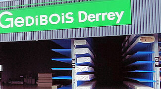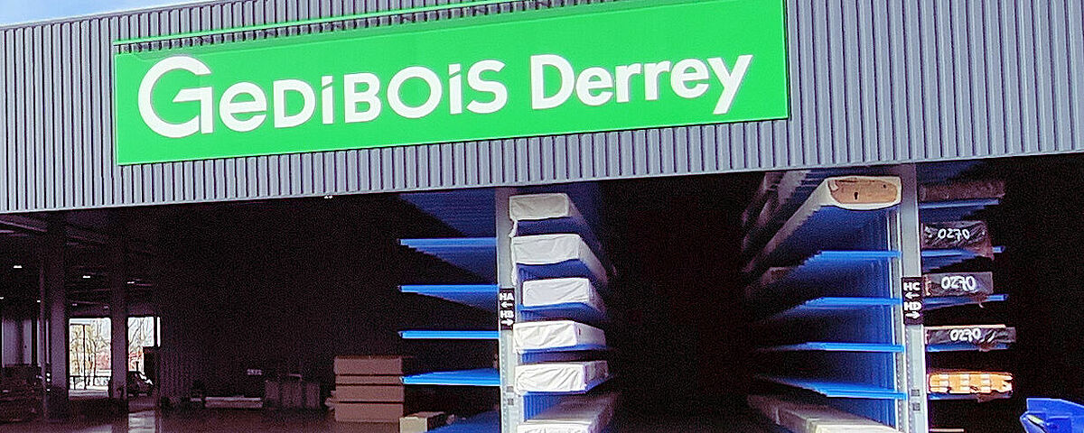 La nuova sede di Gedibois Derrey offre a clienti commerciali e privati una gamma completa di prodotti in legno, dal legname da costruzione ai rivestimenti per facciate e pavimenti. Oltre a una moderna superficie espositiva di 1.000 metri quadri, il nuovo edificio comprende un'area di stoccaggio di circa 7.000 metri quadri. Gedibois Derrey ha sempre circa 2.500 articoli in magazzino. Il magazzino si trova in parte in un capannone chiuso e in parte in una struttura aperta provvista anche di un'area drive-in per i clienti.
