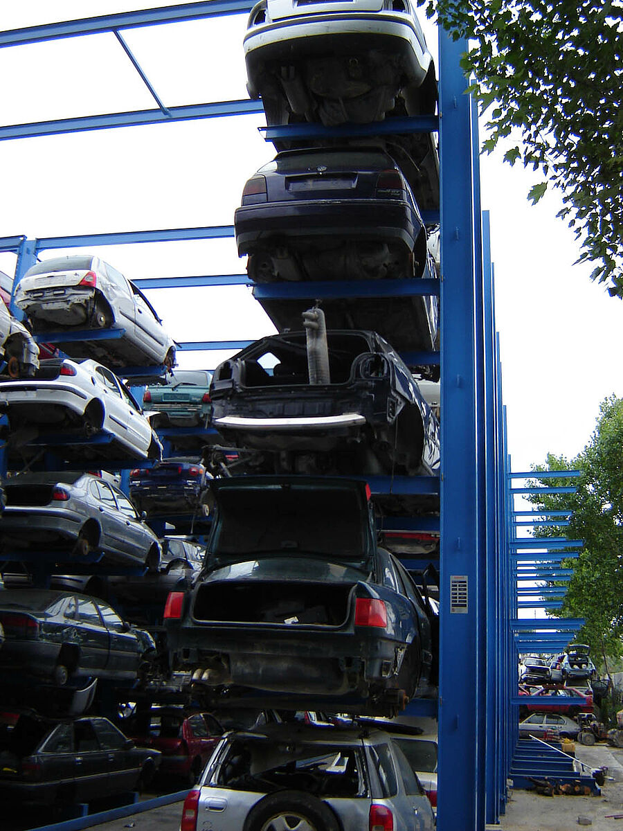 In molti paesi già da diversi anni si è cominciato ad utilizzare scaffalature per veicoli prodotte da aziende specializzate che soddisfano le molteplici e rigorose norme vigenti. Su di una targhetta regolamentare apposta dal produttore sullo scaffale sono riportate le caratteristiche tecniche dell’impianto ed i dati del produttore stesso. Questi dati sono consultabili in qualsiasi momento per ispezioni di qualsiasi genere da parte delle autorità competenti o di società di assicurazione. Queste ultime hanno anche accesso alla documentazione nella quale si attesta l’adempimento delle norme e che viene consegnata all’impianto di recupero dal produttore. Specialmente in caso di deposito all’aperto spesso si utilizzano scaffalature la cui idoneità non è certificabile dal punto di vista statico a causa di carenze progettuali che non tengono conto delle zone sismiche o ventose.