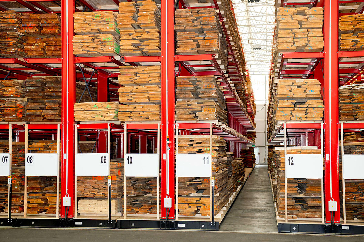 Hechenblaickner nel magazzino centrale di Graz - un vero e proprio megastore del legno - su una superficie di 20.000 metri quadrati, offre segati, piallacci, pannelli in legno massiccio e semilavorati per la produzione di porte e finestre. Prima la merce veniva accatastata in blocchi a terra. E ciò, per il numero sempre crescente degli articoli immagazzinati, richiedeva sempre più spesso dispendiose manipolazioni del materiale. Con cataste di prodotti lunghe fino a 6 metri, larghe più di un metro e del peso a volte anche di 3000 kg ciò comportava un notevole dispendio di tempo. Inoltre i frequenti spostamenti spesso causavano danni ai prodotti stoccati.