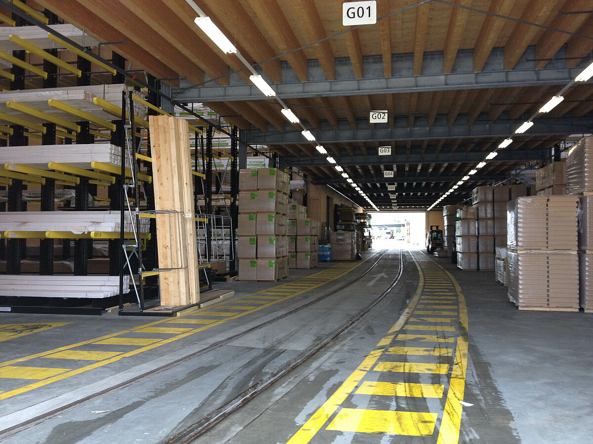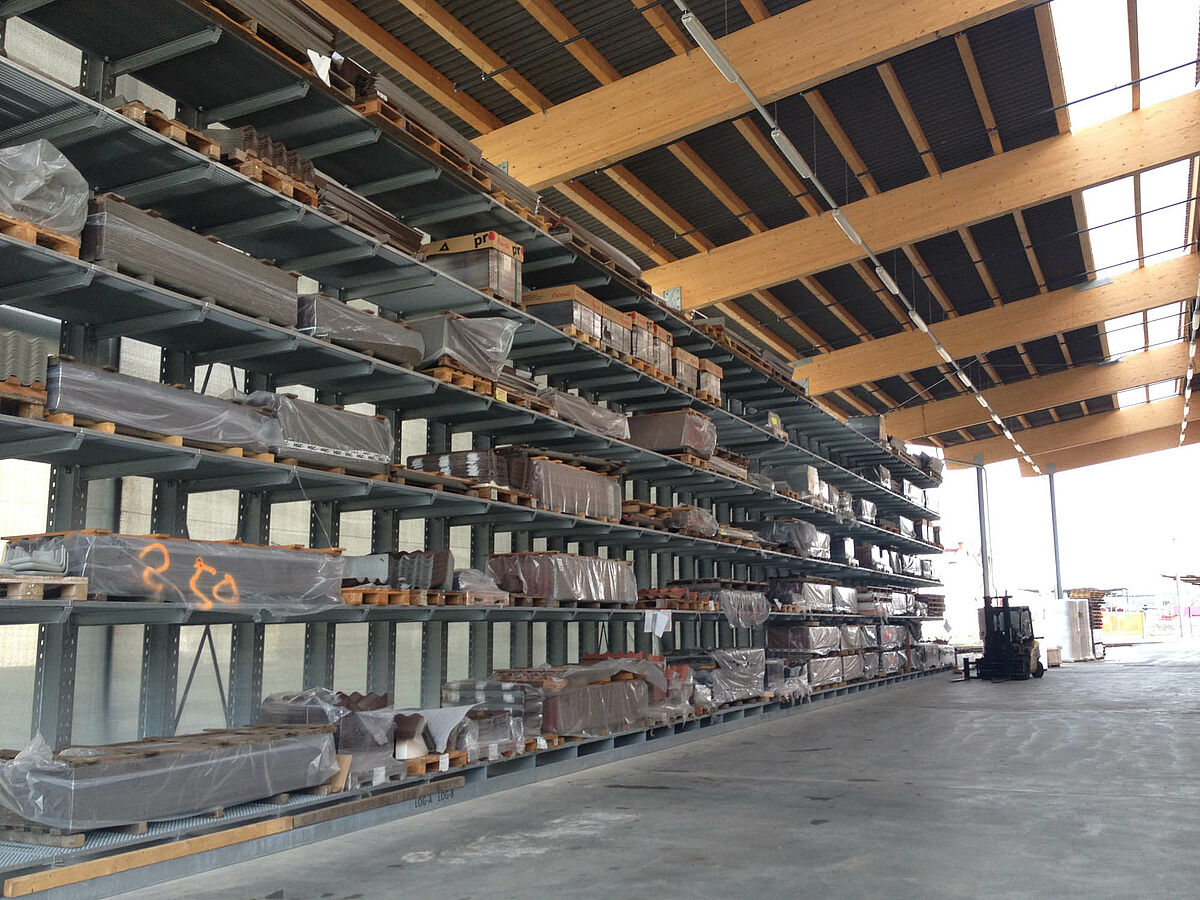 La HG COMMERCIALE (HGC), una delle imprese commerciali leader in Svizzera nel settore edilizio, ha ampliato il proprio punto di vendita di Biel attrezzandolo con sistemi di scaffalature OHRA. Qui una combinazione studiata su misura di scaffalature cantilever, portapallet e verticali è in grado di alloggiare un'ampia gamma di materiali da costruzione. Il deposito coperto è stato realizzato come magazzino drive-through: i clienti attraversano il magazzino percorrendolo in un'unica direzione e ricevono la merce direttamente dai diversi scaffali.