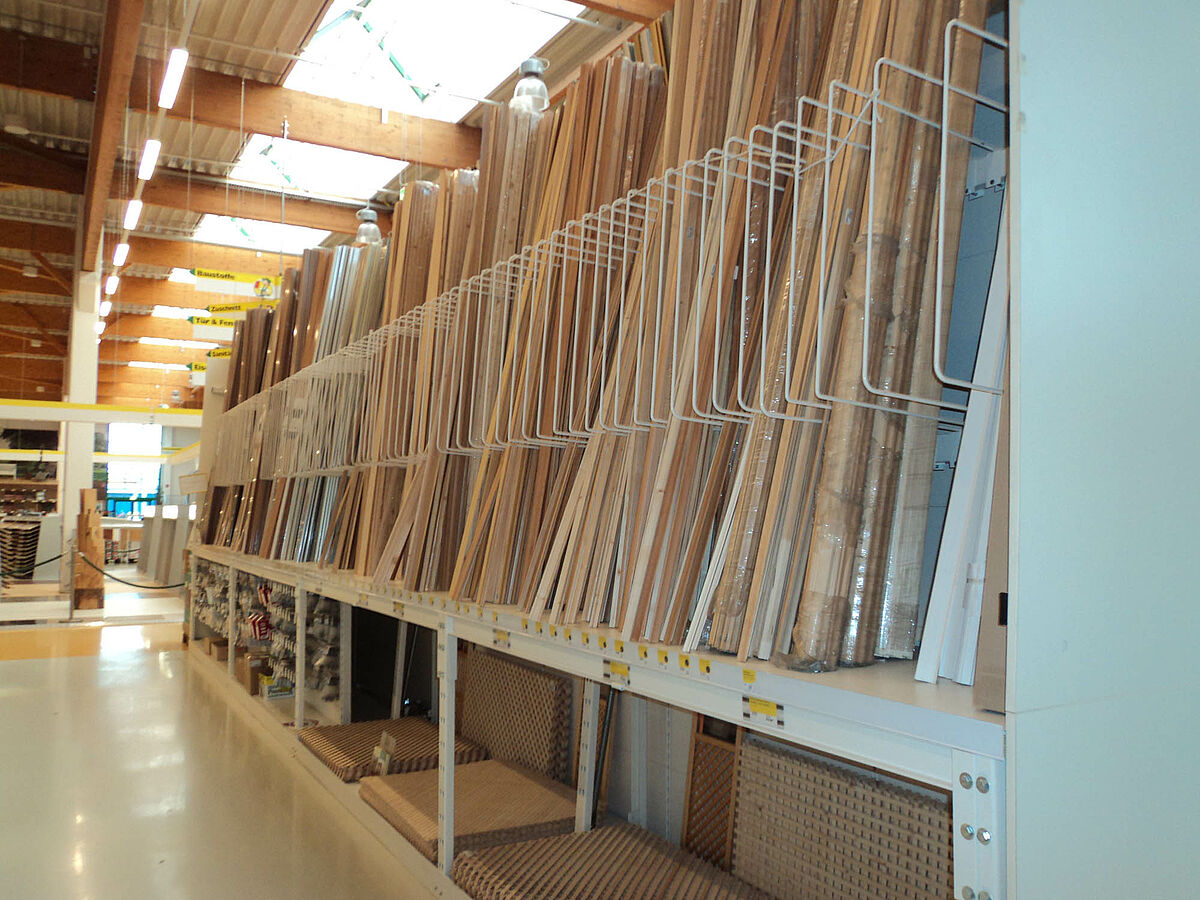 Inizialmente la merce - oltre a legno e materiali lignei l'assortimento comprende anche piastrelle, pietre, merce in sacchi ed altri materiali da costruzione - veniva immagazzinata in capannoni di legno e magazzini a blocchi. Ma l'inadeguato sfruttamento degli spazi ed il notevole dispendio in termini di lavoro manuale che il vecchio sistema comportava rendevano necessaria una soluzione più moderna. Così Possling ha deciso di dotare i propri magazzini di varie scaffalature della OHRA Regalanlage GmbH. Lo specialista di Kerpen ha convinto il committente con il proprio vasto assortimento di soluzioni: oltre a scaffalature cantilever e portapallet, anche in versione per carichi pesanti, a Possling occorrevano scaffali speciali per lo stoccaggio di porte e telai e per l'immagazzinamento verticale di mattonelle e lastre.