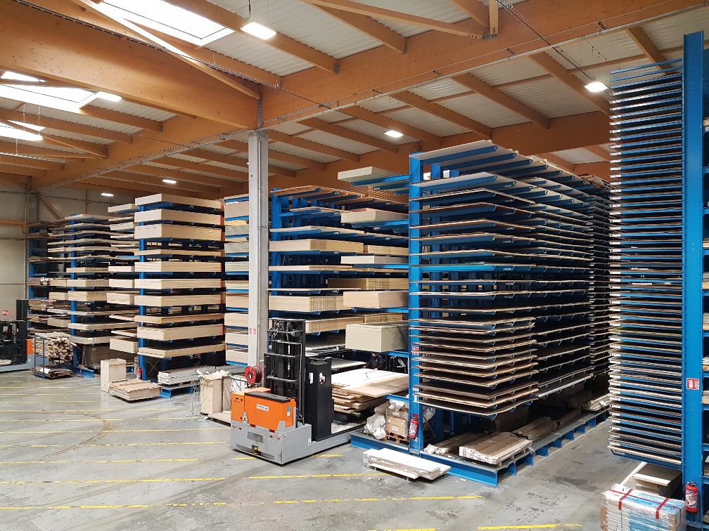 I cantilever OHRA , grazie alla loro struttura in profilati d'acciaio laminati a caldo, consentono un'elevata capacità di carico: l’altezza è stata portata a 9 m contro i 4 del magazzino precedente permettendo cosi’ la possibilità di accesso a 1200 articoli tra cui pannelli in legno, melamminico, laminato e porte. In questo modo il materiale è tutto collocato nello stesso luogo a favore delle operazioni di inventario. Le mensole di carico dei cantilever OHRA non sono imbullonate ma agganciate con un sistema brevettato che permette la movimentazione rapida dei livelli senza l’impiego di alcun attrezzo