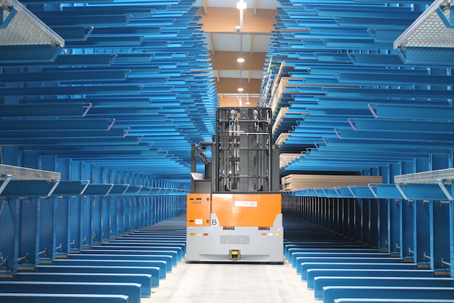 Hue-Socoda, uno dei principali distributori di pannelli in legno in Bretagna, ha organizzato il suo nuovo magazzino a Langueux con scaffalature OHRA: L'elevata capacità di carico delle scaffalature cantilever che permettono un'altezza di stoccaggio di nove con un’ottimizzazione dello spazio. I cantilever sono strutture flessibile che si adattano alle diverse necessità del magazzino. Inoltre, una piattaforma di stoccaggio ottimizza lo spazio nel magazzino: Consente infatti la sistemazione delle merci di piccole dimensioni che altrimenti sarebbero collocati sulle scaffalature a due piani..