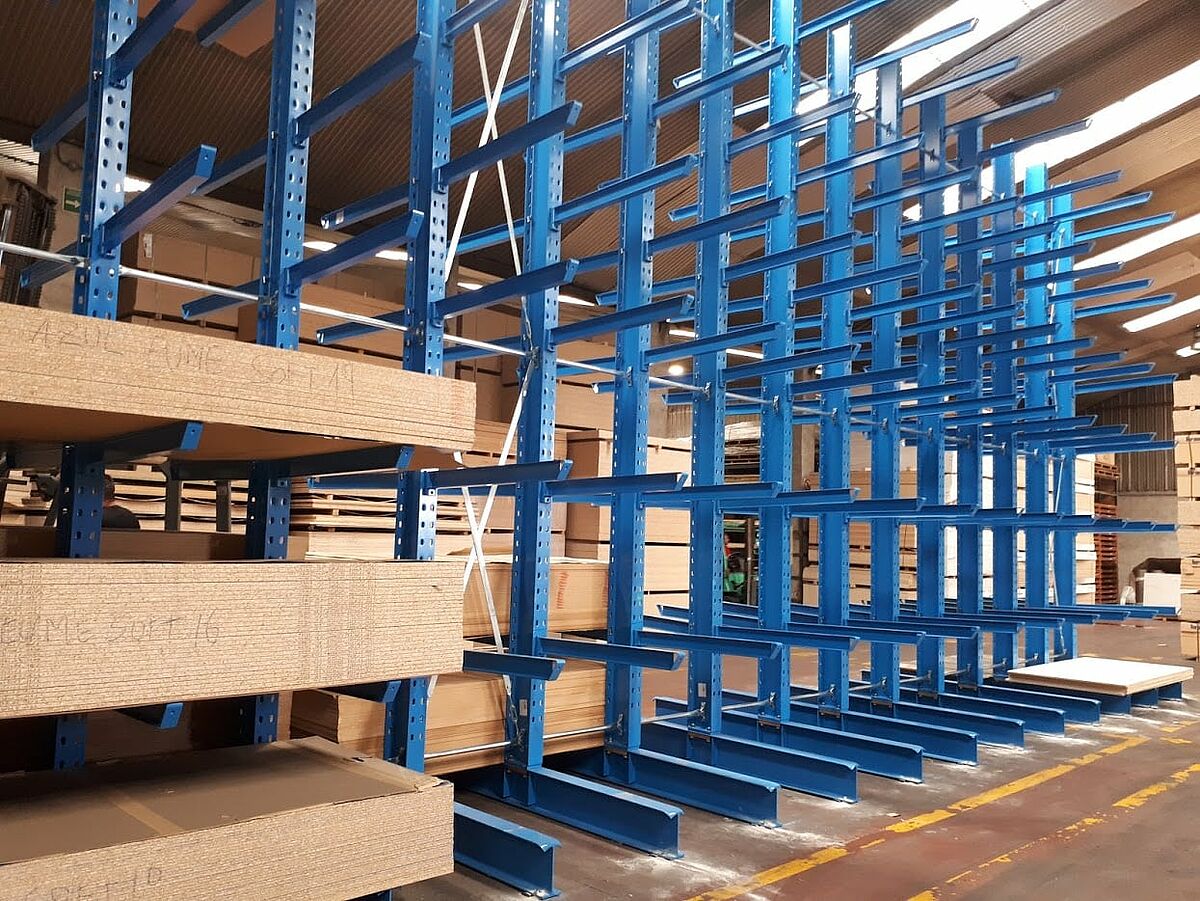 Al fine di mantenere il sempre crescente assortimento, disponibile anche in futuro velocemente, la Fabricados Reyna ha installato cantilever OHRA. Due file di 36,9 metri di lunghezza ciascuna e una fila di 45 metri. OHRA, azienda leader sul mercato europeo nella fornitura di scaffalature cantilever, assicura un'elevata capacità di carico con una struttura poco ingombrante grazie all'impiego di robusti profili in acciaio che costituiscono gli elementi portanti. Questo permette di avere uno spazio di stoccaggio compatto su una superficie ridotta. I nuovi cantilever bifacciali della Fabricados Reyna hanno una capacità di carico di 4.200 chilogrammi per lato di ogni singola colonna; ognuno dei bracci è regolabile in altezza è in grado di sostenere fino a 700 chilogrammi, con una lunghezza di 1.200 millimetri.
