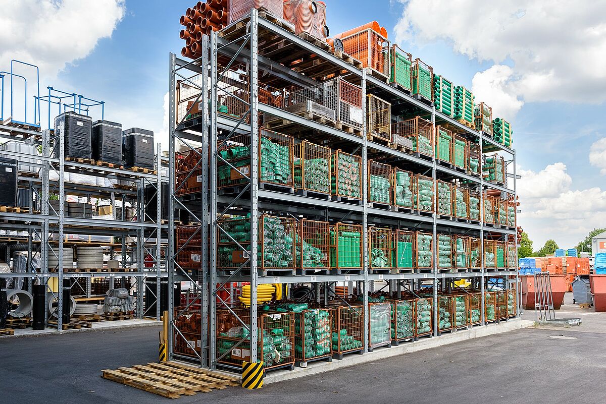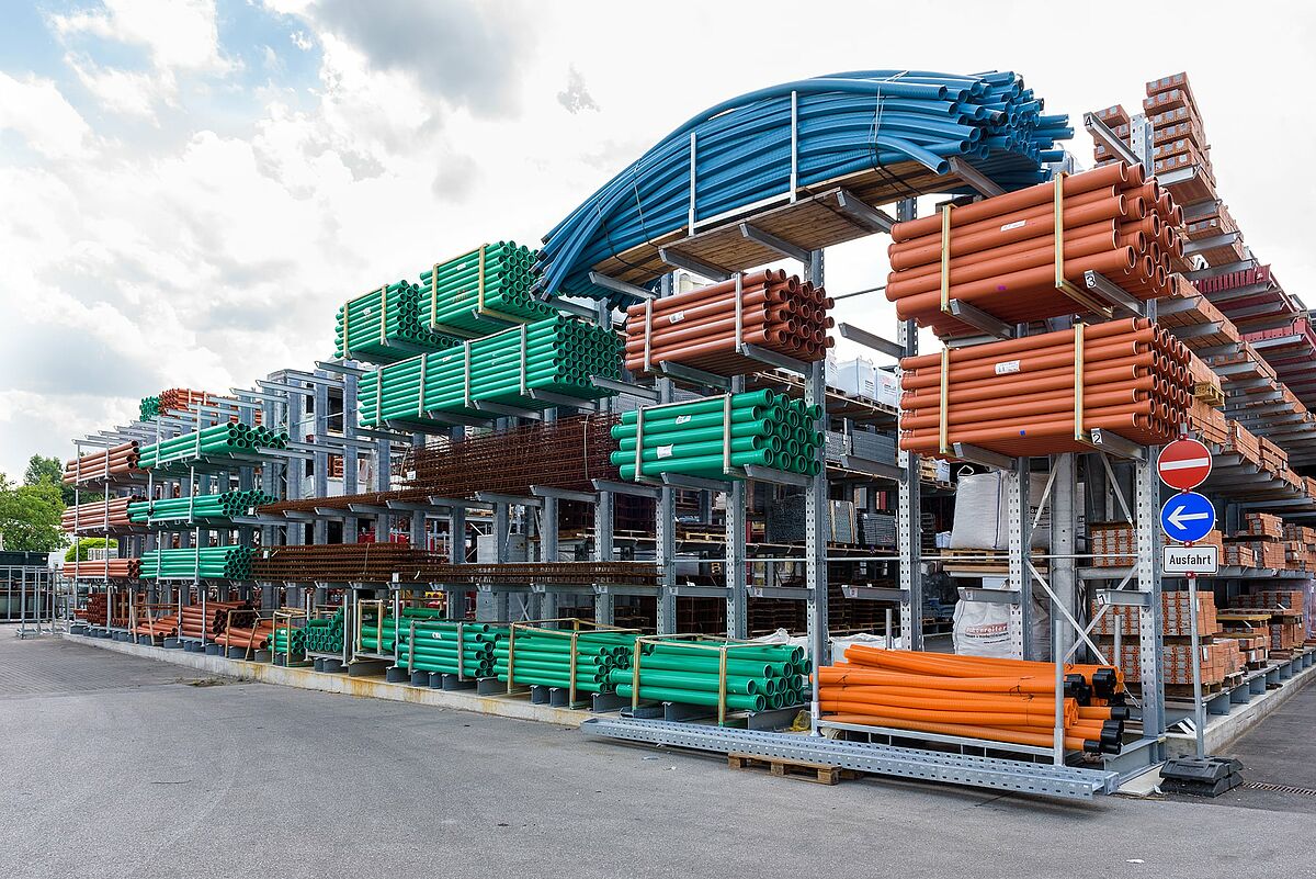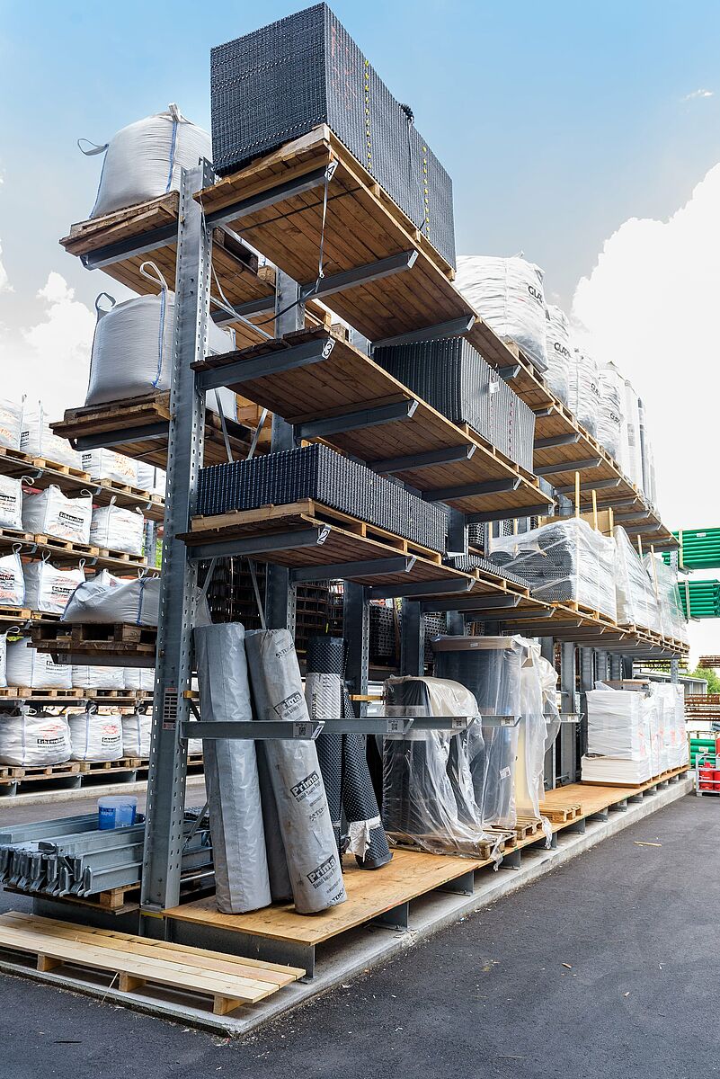 Il rivenditore specializzato Schönreiter Baustoffe, con sede a Essenbach vicino a Landshut, ha ampliato il suo assortimento di prodotti con materie prime, materiali da costruzione e legno. La capacità di stoccaggio necessaria, sia all’interno che all’esterno, è stata creata dall'azienda con l'ausilio di scaffalature Cantilever e di scaffali portapallet di OHRA. La combinazione dei due tipi di scaffalature consente uno stoccaggio molto flessibile dei vari materiali. Grazie all'altezza degli scaffali di oltre 7.500 mm, la nuova merce può essere immagazzinata in un’area molto ridotta.