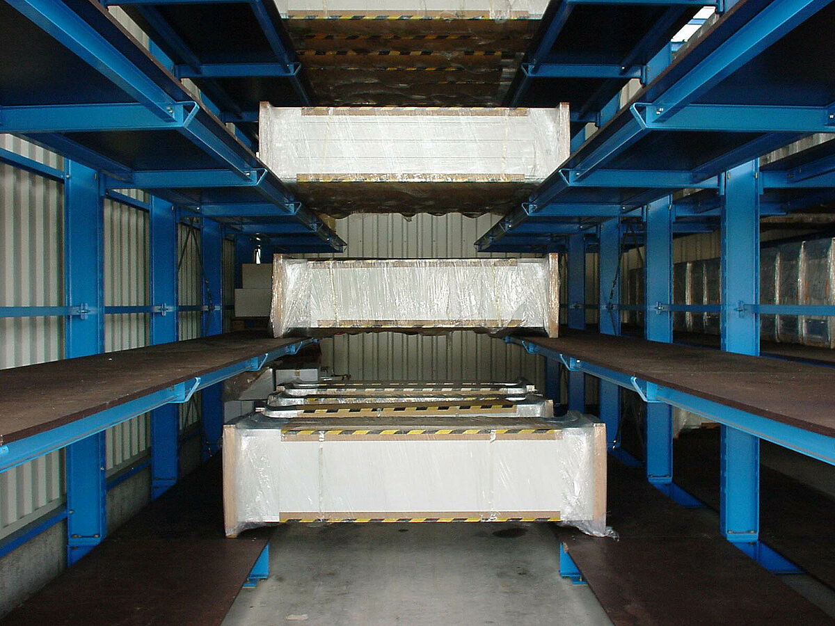 A causa dell’enorme successo di vendita si era reso necessario un ampliamento del magazzino per i prodotti finiti; contemporaneamente bisognava però fare i conti con le esigenze particolari dello stoccaggio di piccole serie di prodotti. A seguito di un lungo lavoro di progettazione è stato creato un nuovo tipo di impianto a drive-in su cantilever che permette di stoccare cancelli larghi da 4,2 m a 6,5 m.