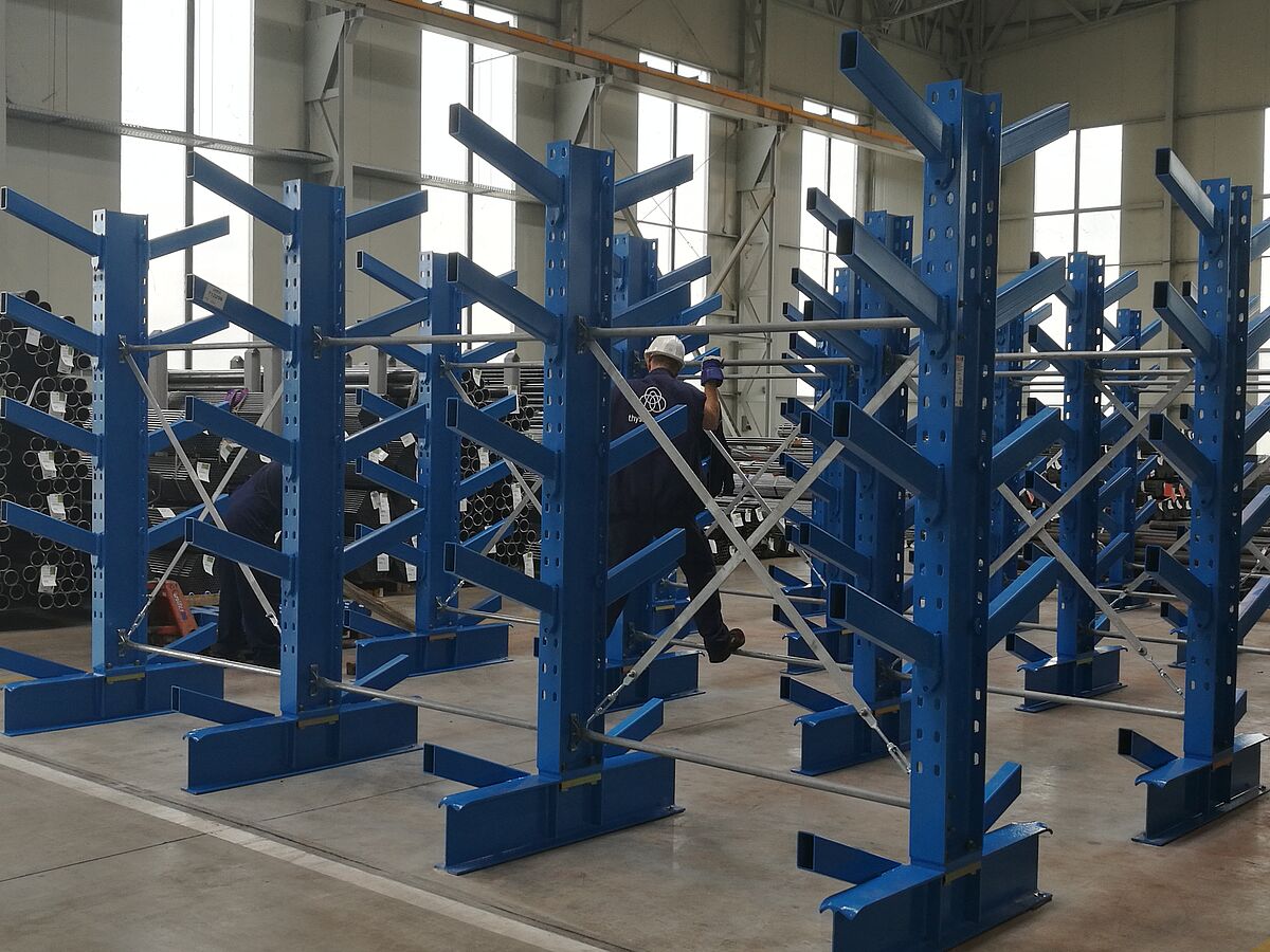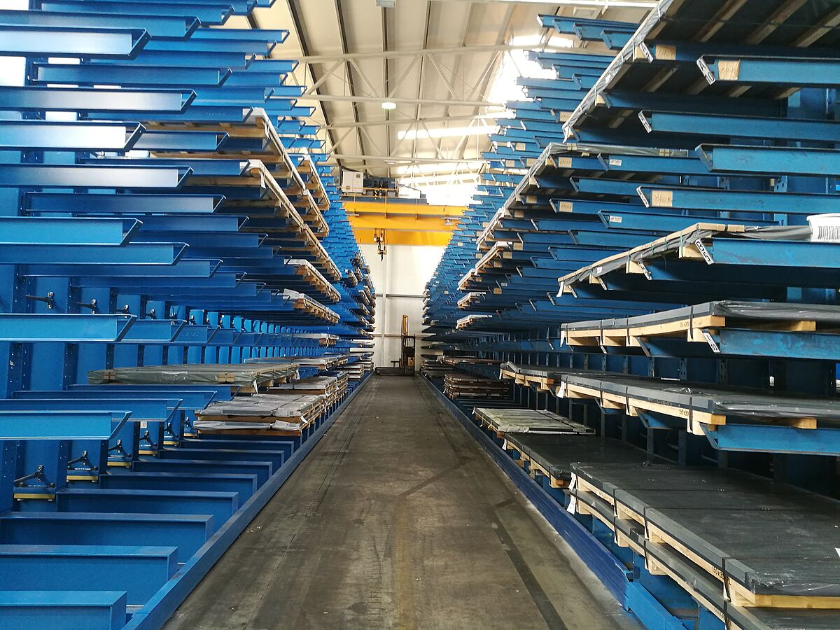 thyssenkrupp ha scelto i rack cantilever di OHRA per il suo magazzino a quattro corsie: Qui, i bracci a sbalzo sono sospesi e possono essere schivati in caso di urti: si evitano danni alle merci e al ripiano stesso, la manutenzione è ridotta al minimo. Inoltre, gli scaffali OHRA, grazie alla loro costruzione di profili in acciaio laminati a caldo con pareti piene, offrono un'elevata capacità di carico. I ripiani alti 6 metri installati alla thyssenkrupp Materials hanno dieci livelli di stoccaggio. Ciascuno dei cantilever da 1.500 mm è in grado di sostenere fino a 1.400 kg. I binari di guida sui piedi consentono l'uso di un carrello a corsia stretta: in totale, l'utilizzo dell'area del magazzino è stato migliorato e la capacità di stoccaggio è aumentata in modo significativo.