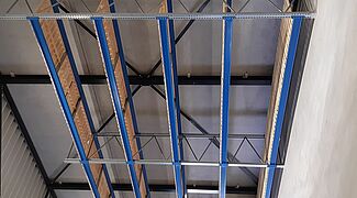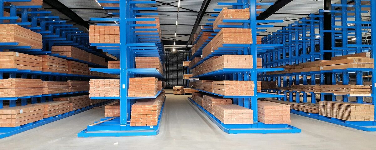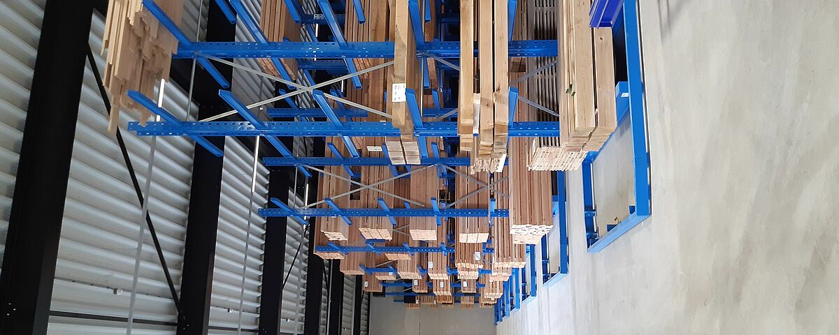 La realizzazione del magazzino a corsie strette garantisce un elevato grado di utilizzo dello spazio, mentre le guide alla base della scaffalatura facilitano le manovre dei carrelli elevatori nelle corsie. Grazie alla costruzione ad alte prestazioni in profili d'acciaio laminati a caldo ad anima piena, le scaffalature possono essere utilizzate anche per sfruttare appieno l'altezza del locale: I portapallet raggiungono un'altezza di 6.600 millimetri, le scaffalature cantilever 6.080 millimetri.