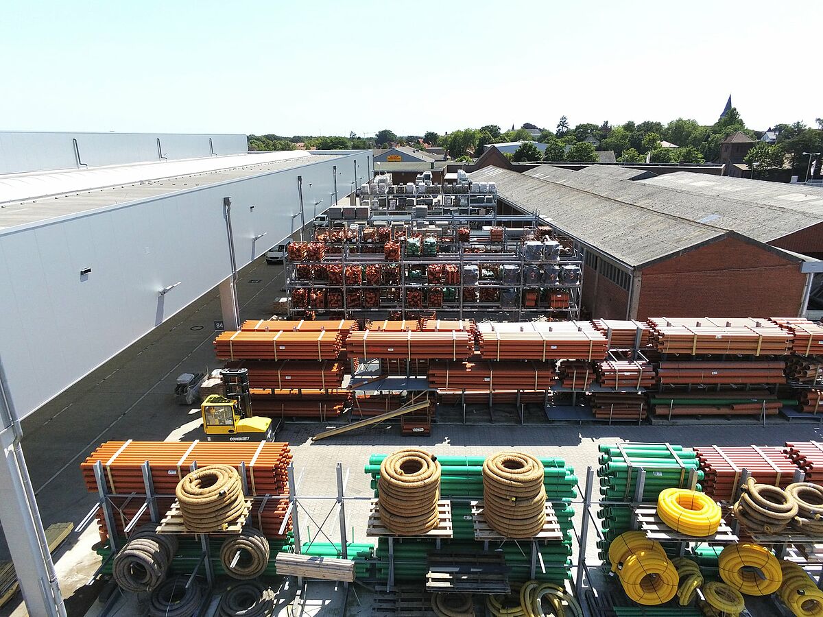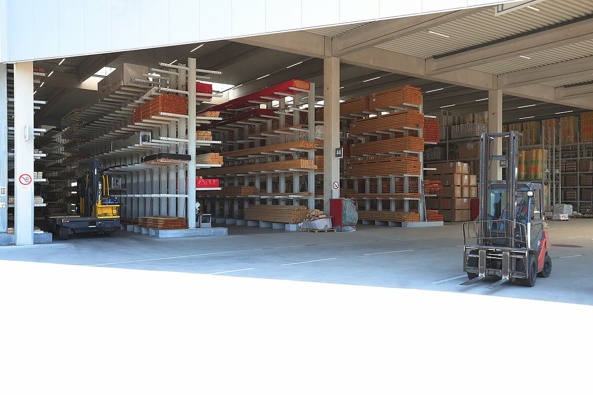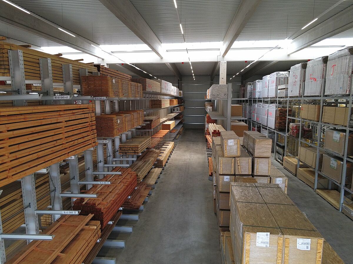 Prima della costruzione del nuovo magazzino, realizzato nel 2018, le merci – materiali per l'edilizia e l'ingegneria civile, prodotti in legno, materiali da costruzione per l’ingegneria civile, il giardinaggio e la paesaggistica, piastrelle, elementi da costruzione interni e ferramenta per il mercato edile – erano immagazzinate in piccole strutture disposte in corsie con un massimo di tre o quattro livelli di carico.