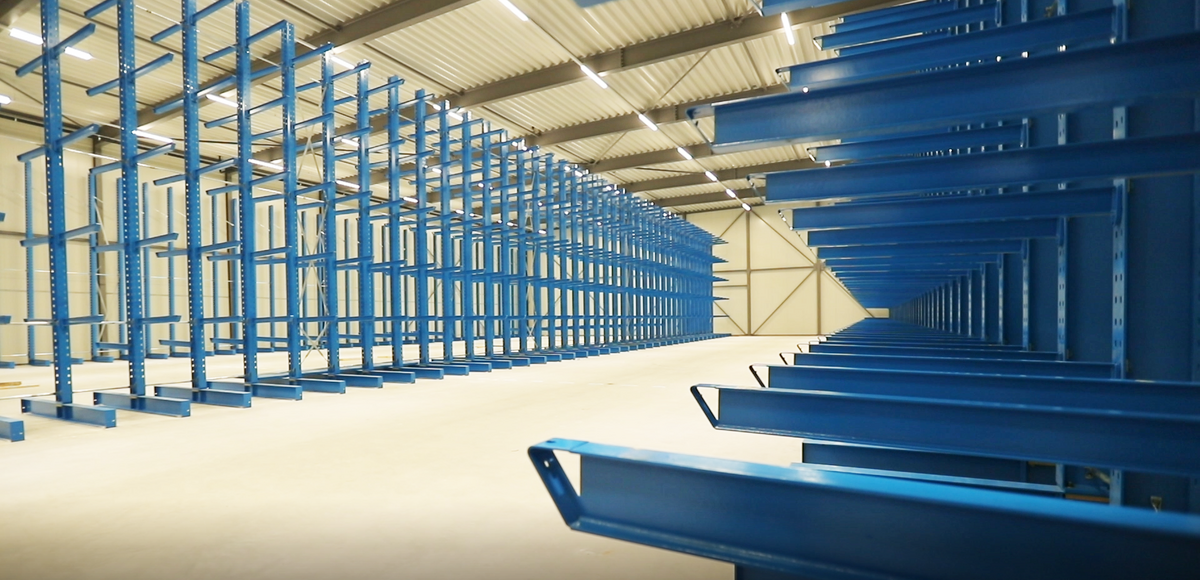 I sistemi di scaffalature OHRA hanno già dato prova del loro valore nella sede di Gouderak, cosicché anche la nuova sede è stata allestita con i sistemi di stoccaggio del leader di mercato in Europa per le scaffalature cantilever. Anche la flessibilità degli scaffali ha favorito la loro applicazione: gli scaffali a griglia nelle scaffalature cantilever consentono lo stoccaggio continuo di diversi formati di pallet e merci senza ingombranti supporti intermedi. In questo modo si evitano anche danni alla merce durante lo stoccaggio e il prelievo. Tutti gli elementi portanti delle scaffalature sono costituiti da solidi profili in acciaio, grazie a questa stabile struttura uno scaffale portapallet con una larghezza di 4.200 mm può sopportare un carico di 7.377 Kg.