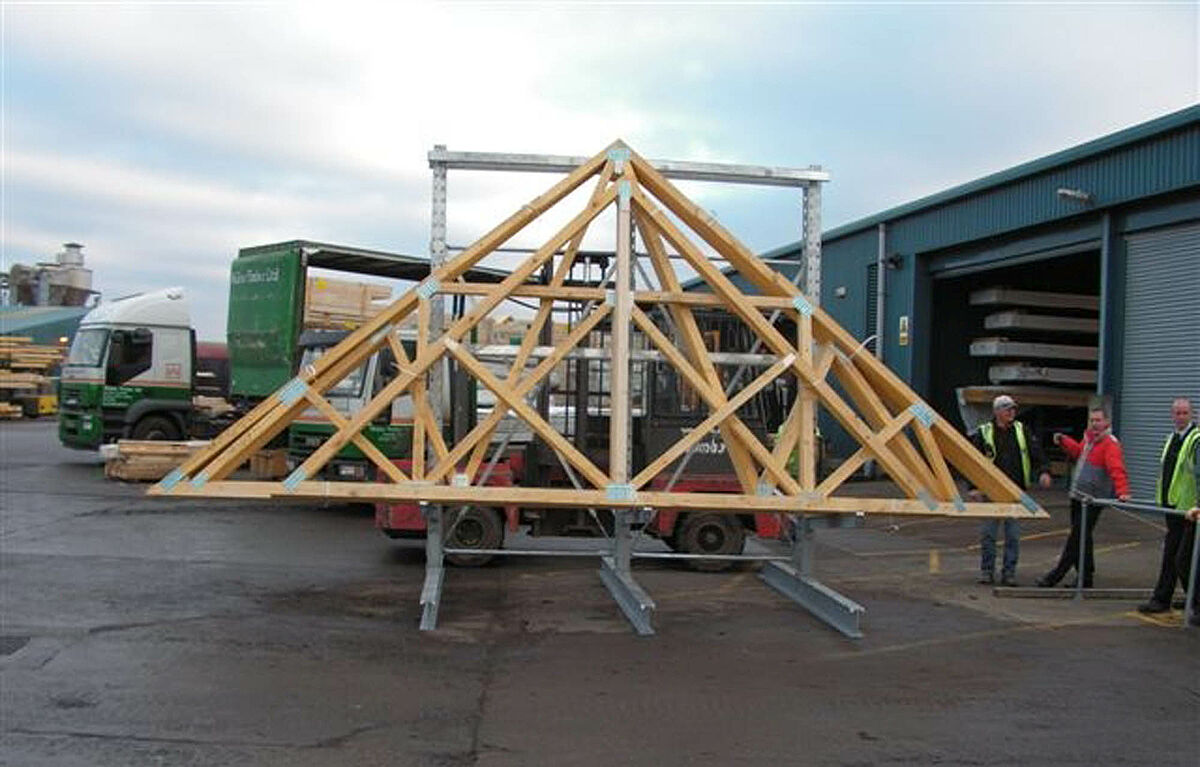 La Walker Timber Ltd., specializzata nella produzione di capriate e costruzioni in legno, con sede a Bo'ness, vicino ad Edimburgo (Scozia), necessita di un sistema di immagazzinaggio per nuove costruzioni di capriate. Esse dovrebbero essere immagazzinate su terreni esterni fino al carico su camion in modo sicuro e tale da facilitarne il prelievo.