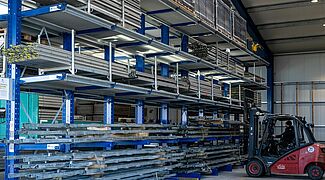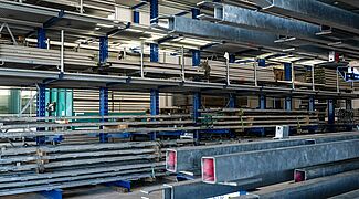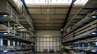 Una sfida è stata rappresentata dal materiale di stoccaggio disomogeneo: gli articoli con pesi, lunghezze e altezze differenti e in diversi ausili per lo stoccaggio (scatole, pallet, rastrelliere con quattro piedini angolari) devono trovare spazio nei nuovi scaffali. "In pratica, per noi era importante immagazzinare tutte le merci in un unico sistema di stoccaggio", afferma Fabian Bechtold, amministratore delegato di LEUBE. Per renderlo possibile, tutti i livelli di stoccaggio delle scaffalature cantilever sono stati dotati di ripiani a griglia. In questo modo gli articoli possono essere immagazzinati pezzo per pezzo in modo flessibile e senza interruzioni.