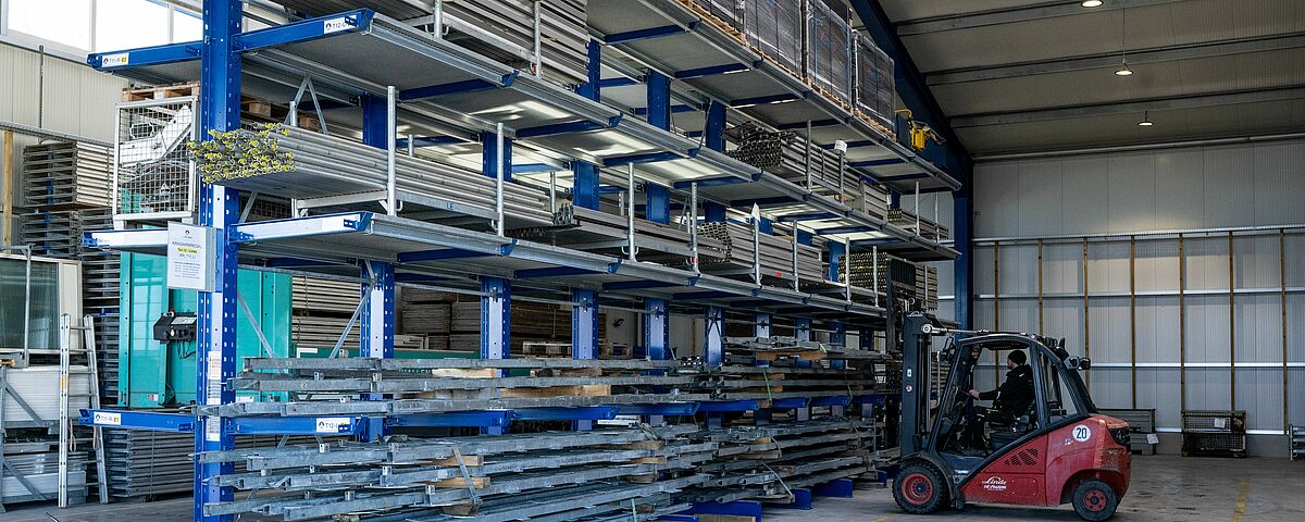 I cantilever sono stati ideati dagli stessi dipendenti di LEUBE – grazie al loro know-how nella costruzione di tendoni e capannoni leggeri, questo è stato possibile senza problemi. "In caso di domande, Ohra ci ha supportato in modo rapido e semplice", afferma Bechtold. Grazie al nuovo capannone dotato di scaffalature Ohra, oggi LEUBE è in grado di stoccare il materiale per tendoni e capannoni leggeri in modo asciutto e con un'elevata efficienza di superficie. I processi di carico e scarico sono notevolmente più veloci grazie alle postazioni di stoccaggio fisse e al facile accesso agli articoli stoccati nelle scaffalature cantilever, riducendo notevolmente i tempi di prelievo dei singoli ordini relativi al progetto. Inoltre, grazie allo