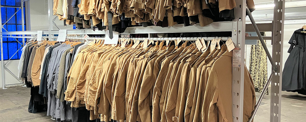 Il magazzino dei Städtischen Bühnen Frankfurt (Teatri municipali di Francoforte) comprende circa 40.000 costumi. Per un settore parziale, dedicato all’immagazzinamento dei costumi di repertorio, i Städtischen Bühnen Frankfurt (Teatri municipali di Francoforte) hanno ora ampliato il loro magazzino con una struttura speciale, basata su scaffalature per pallet. Le aste appendiabiti sono montate sui supporti , in modo che i costumi possano essere riposti appesi alle grucce. Grazie all'uso delle scaffalature, il magazzino dei costumi può ora conservare i costumi in modo più efficace nell'area di stoccaggio ampliata.