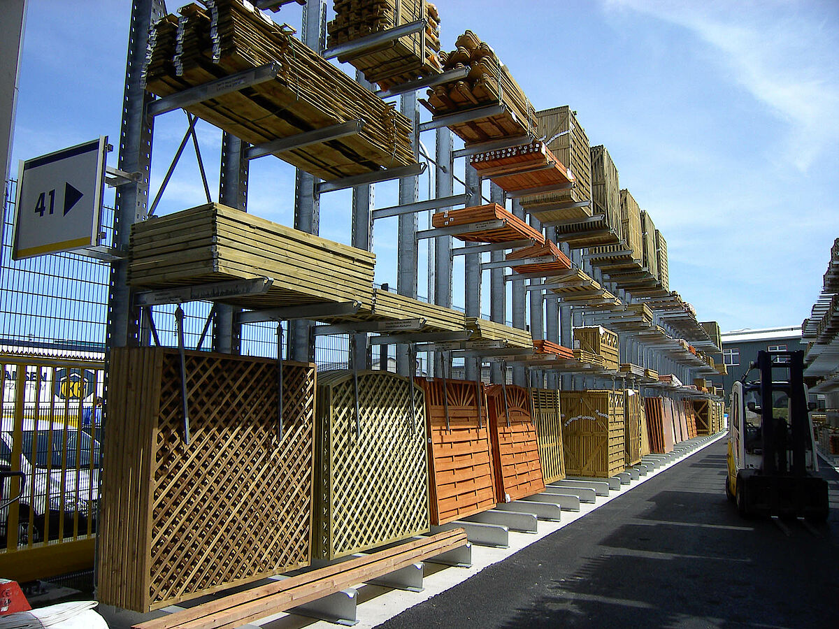 Le scaffalature cantilever rappresentano il sistema di stoccaggio ideale per immagazzinare merci lunghe, pesanti e voluminose. Con le scaffalature cantilever, dalla robusta ma contemporaneamente slanciata costruzione laminata a caldo, è possibile ottenere un'elevata capacità di stoccaggio su una piccola superficie. Piani di stoccaggio continui non ostacolati da fastidiosi supporti intermedi rendono possibile l'immagazzinamento di merci dalle differenti dimensioni e variamente assortite su un unico livello. Le mensole flessibile e regolabili in altezza evitano l'impatto delle forche del carrello elevatore proteggendo in tal modo la scaffalatura e la merce da danneggiamenti. Le scaffalature cantilever OHRA sono verniciate a polvere e sono realizzate secondo le esigenze specifiche dei clienti adattandosi al vostro magazzino e alla vostra merce.