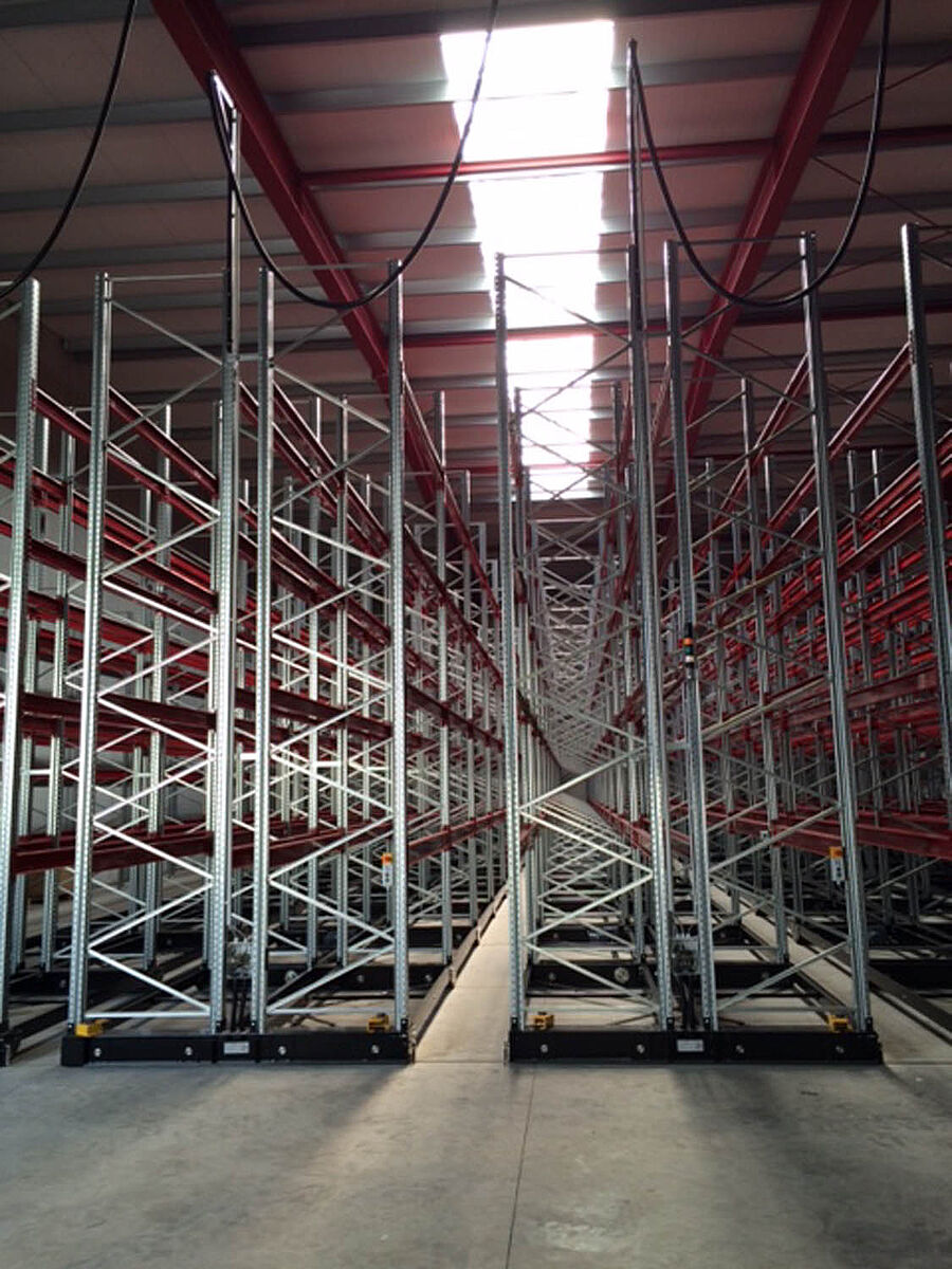 I porta pallet su basi mobili sono impianti dinamici adatti allo stoccaggio di merci pallettizzate utilizzando una superficie ridotta. In questa soluzione le scaffalature portapallet sono montate su basi mobili e la fila completa viene movimentata tramite l’utilizzo di un dispositivo a controllo elettronico o manuale. Le scaffalature su basi mobili possono essere installate sia in nuovi edifici sia in siti con pavimentazione preesistente favorendo lo sfruttamento dello spazio, in quanto si utilizza un solo corridoio che viene aperto solo al momento necessario di carico o scarico delle merci