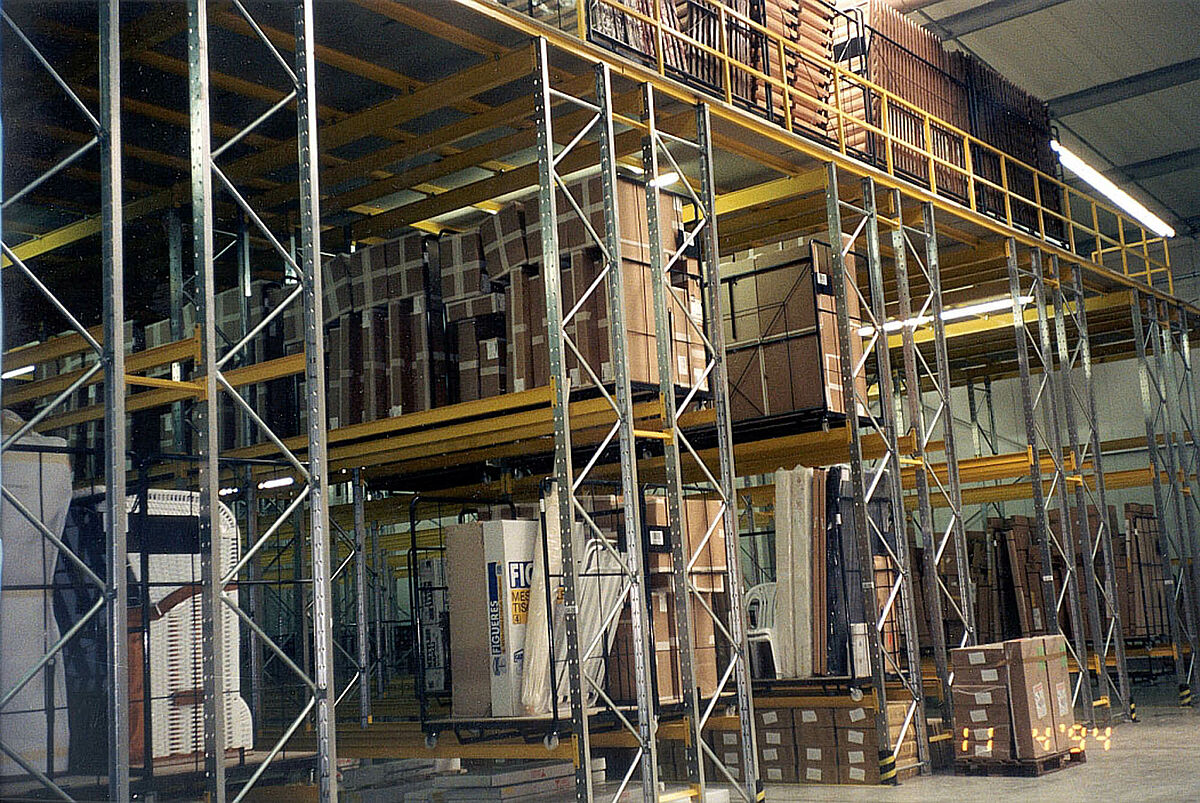 La combinazione tra scaffale e soppalco crea la possibilità di soluzioni di stoccaggio personalizzate e versatili come ad es. in combinazione a una zona picking. Grazie ai robusti profili in acciaio laminato a caldo dei porta pallet OHRA, è possibile realizzare senza problemi più livelli in un impianto.