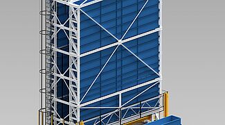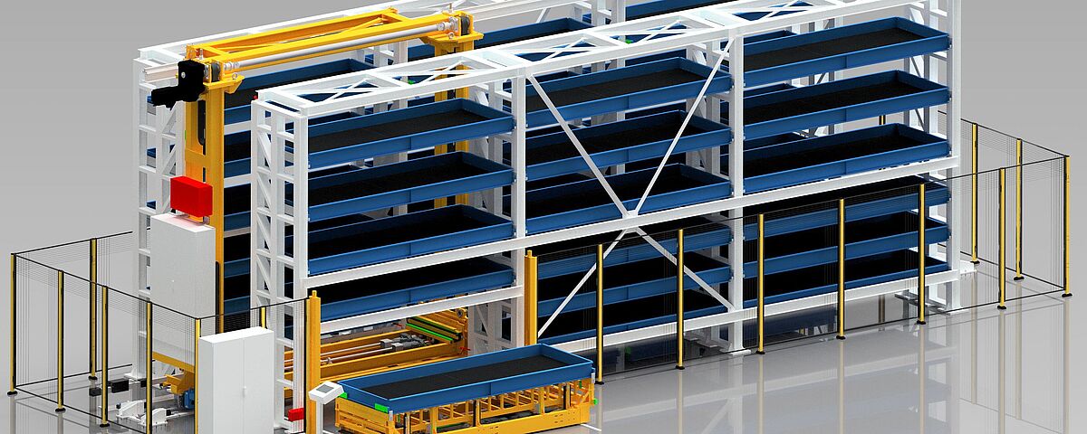 2. Il TowerMat TM-FE è progettato per capacità di stoccaggio medie e, grazie a più torri di stoccaggio e a un trasloelevatore centrale, garantisce un’efficienza particolarmente elevata.