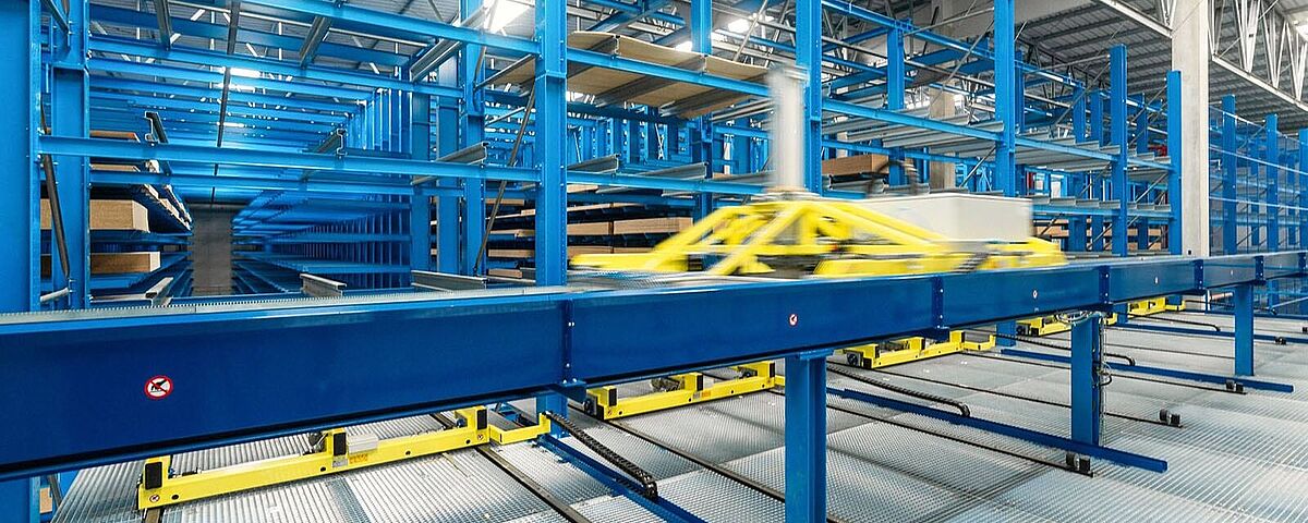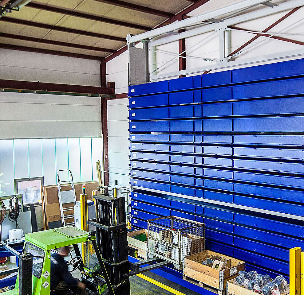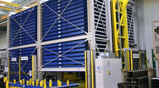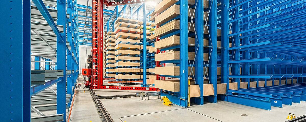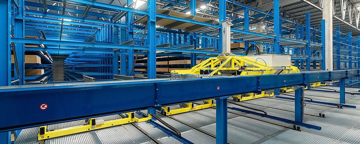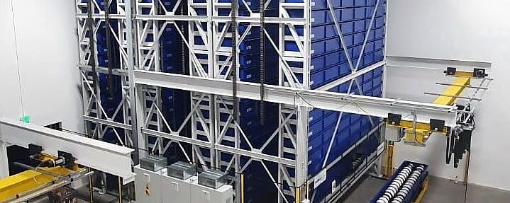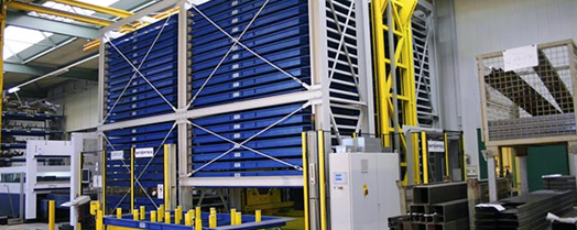 - Stoccaggio e prelievo efficienti grazie al trasloelevatore integrato