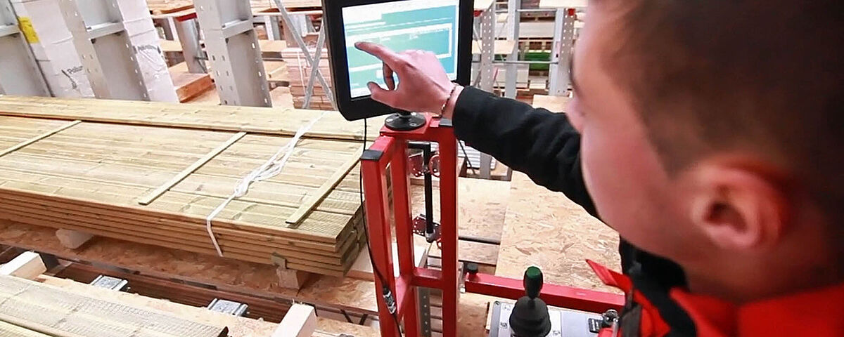 Il trasloelevatore raggiunge automaticamente la locazione identificata nello scaffale, precedentemente impostata dall’operatore. Il posizionamento preciso nella scaffalatura avviene in modalità totalmente automatica, mentre i processi di immagazzinamento e trasferimento, ad esempio di tavole di legno, vengono stabiliti dall’operatore attraverso un comando manuale. Si tratta di operazioni di sollevamento e abbassamento del carico, nonché di orientamento delle forcelle.