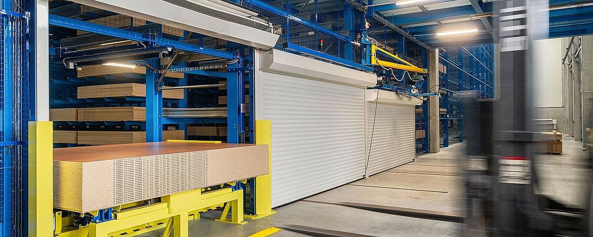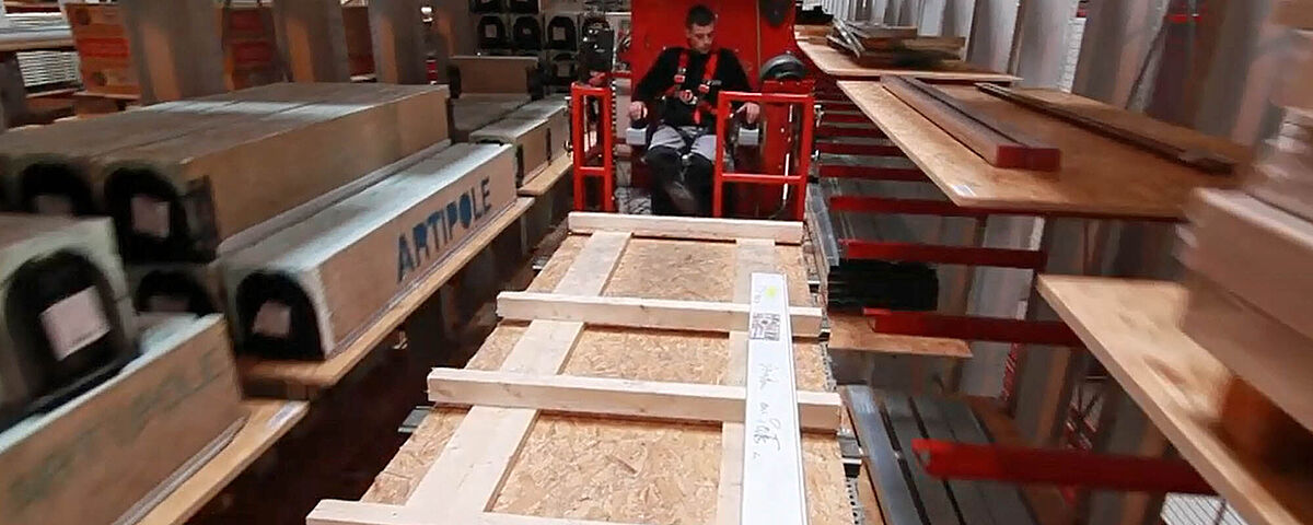 Entrata e uscita, prelievo di pacchi e pannelli singoli e preparazione degli ordini avvengono in modo completamente automatico.