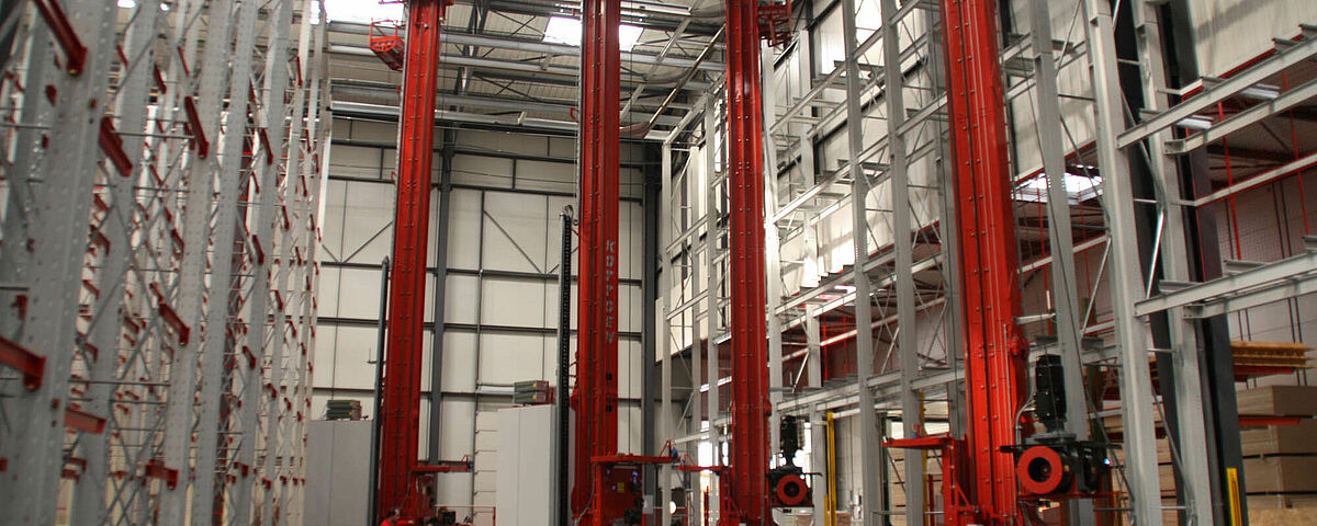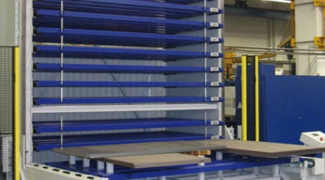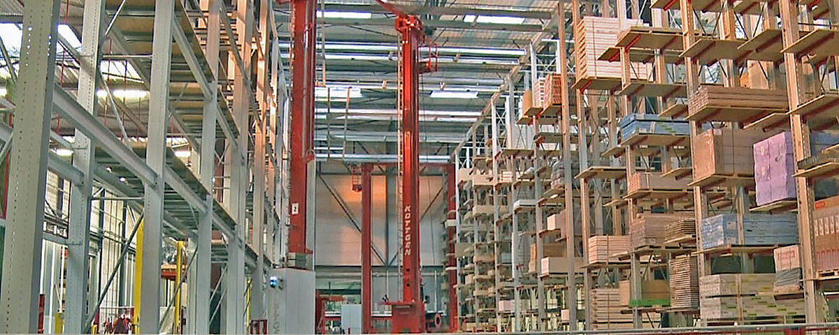 Completamente nuovo è il concetto di sfruttare i vantaggi del prelievo in due fasi: entrata e uscita dei pacchi nel magazzino sono gestite da un trasloelevatore. Se un ordine in spedizione richiede il prelievo di singoli pannelli, un manipolatore a vuoto prepara gli articoli corrispondenti per la spedizione, per cui possono essere lavorati più ordini contemporaneamente .I due sistemi separatamente preparano gli ordini in modo molto efficiente e in pochissimo spazio.